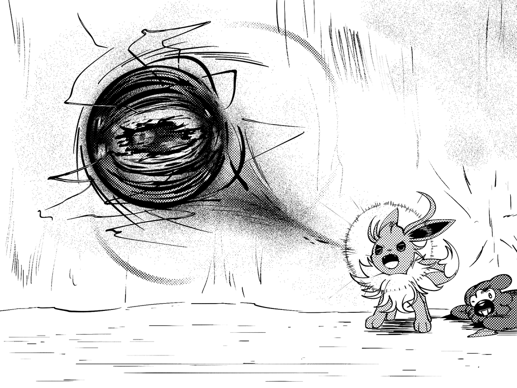 “You’re too nice, Leon! I’ll be back in a second!” The Eevee tossed a bag of coins onto the counter, hopped upwards, and then darted into the storage area. Leon’s glee was trampled on by another wave of customers echoing mindless requests.